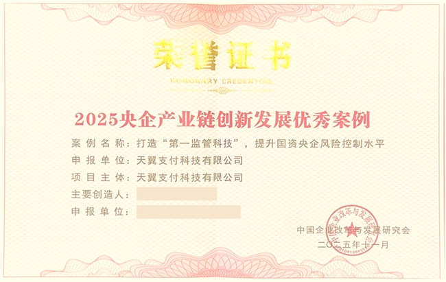 会上“2025央企产业链创新发展优秀案例”评选结果正式公布,天翼支付科技有限公司(简称“中国电信翼支付”)提报的“御风”智能化穿透式监管平台案例成功入选。
